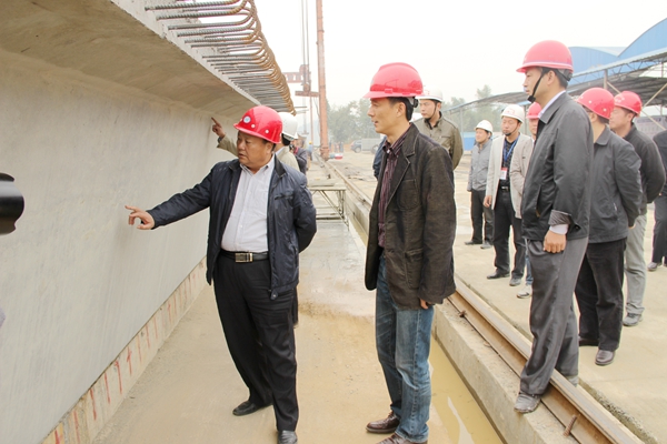 屠董事長一行在寧千02標項目玉虹大橋梁場進行了實地察看,并聽取了項目負責人對項目施工進展情況的介紹。屠董事長一行對寧千02標項目目前取得的成績表示滿意,對寧千02標項目部上下團結一致,有力抓住大干時機,加快推進施工進度的有效舉措表示肯定。屠董事長要求項目在下一步的工作中一定組織安排好后續(xù)施工計劃和進度計劃,強化細節(jié)管理,做好質量安全管理,保證重大施工節(jié)點的落實。
